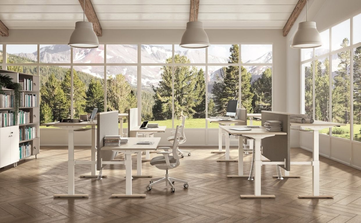 Ergonomiczne biurko z możliwością dostosowania wysokości pracy.