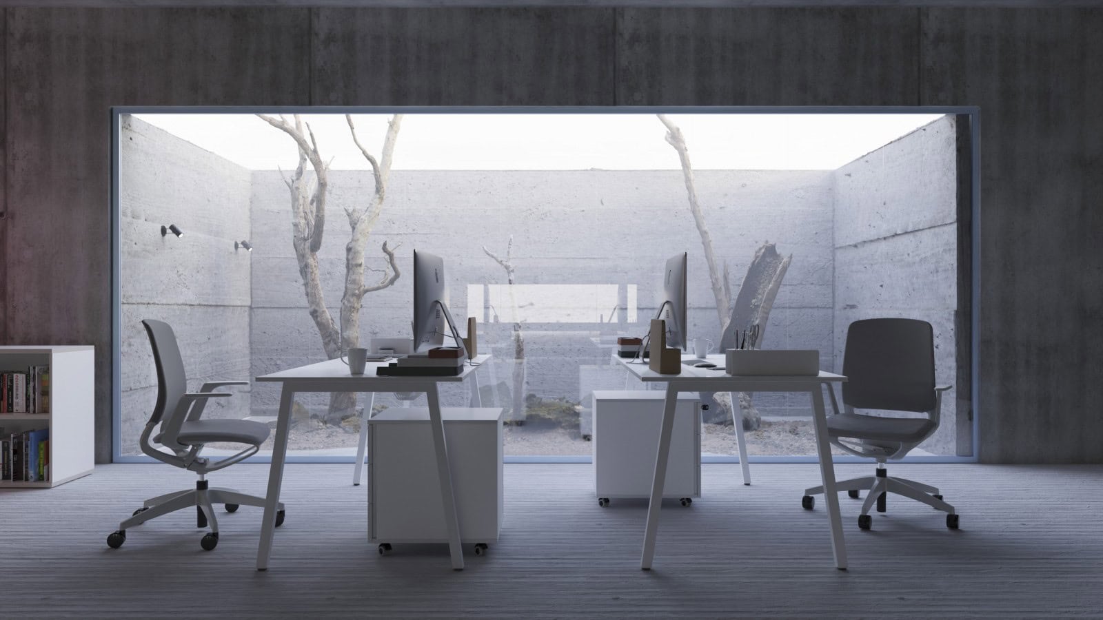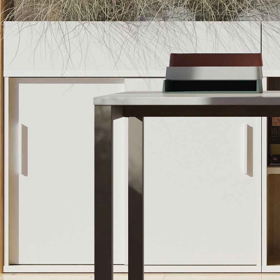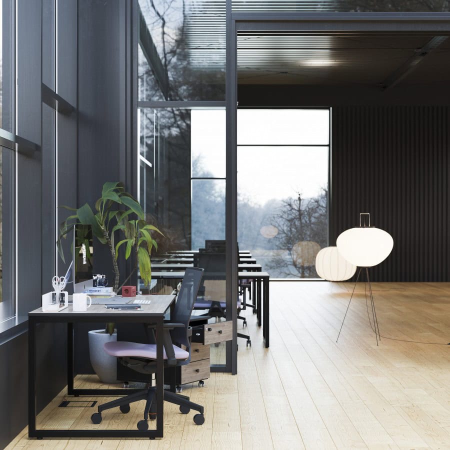 System ekonomicznych biurek z lekkim stelażem, który oferuje rozwiązania do różnych przestrzeni i stref. Lekki wizualnie stelaż, subtelny blat, szczególnie w wielostanowiskowych układach bench, w pomieszczeniach typu openspace uwolnią swój potencjał. Cechą charakterystyczną systemu jest monolityczny wygląd nogi, bez widocznych linii łączenia stalowych elementów nogi.